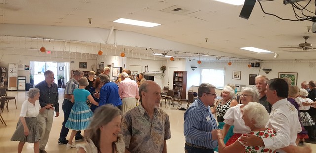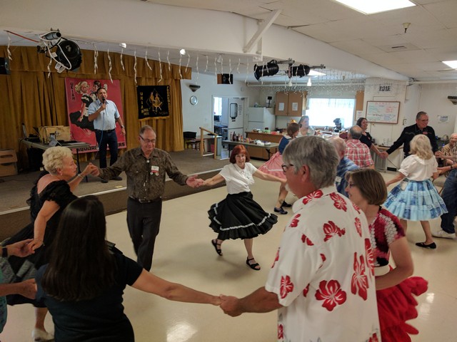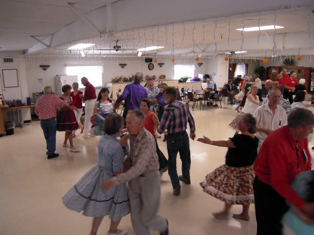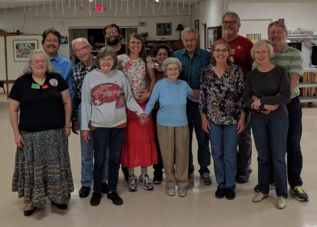 We have danced in a number of locations around the Ukiah area — the State Hospital in Talmage (before it became the City of 10,000 Buddhas), Frank Zeek School on the north side of Ukiah, and the Todd Grove Clubhouse at the golf course — before arriving at our current home of Bartlett Hall at the Ukiah Senior Center.